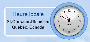 Blues Météo affiche sur la page principale, une petite horloge analogique prévue pour afficher l'heure locale à votre emplacement.